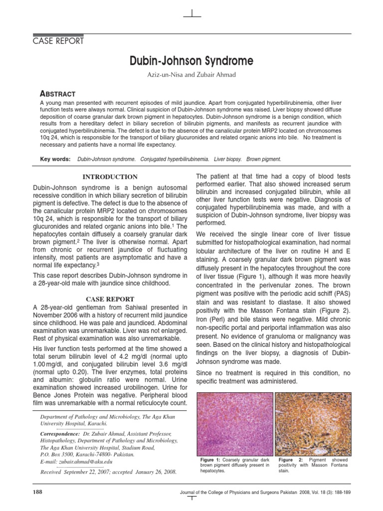 DubinJohnson syndrome is a rare autosomal recessive benign disorder that causes an isolated increase of conjugated bilirubin in the serum. In babies a rise in conjugated bilirubin can signify rare but serious problems with the development of the bile drainage system in the liver such as biliary atresia. Or it may be done to screen for a blood disease such as hemolytic anemia or pernicious anemia.