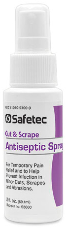 Antiseptic spray provides fast pain relief and helps protect minor cuts scrapes and burns against infection First aid spray moisturizer contains maximum OTC strength benzocaine to provide pain relief benzethonium chloride for antibacterial effect and aloe and vitamin E to soothe and moisturize. To use 3M Skin and Nasal Antiseptic spray in the mouth spray directly into the mouth or throat. It is used to prevent skin infections. Helps to clear throat infection. Everyone seems to have a go-to remedy for minor scrapes or cuts. It can also be used to make an antiseptic wound wash known as Dakins Solution. Avoid swallowing the spray. What is an antiseptic. Leave the medicine in place for 15 seconds then spit it out.