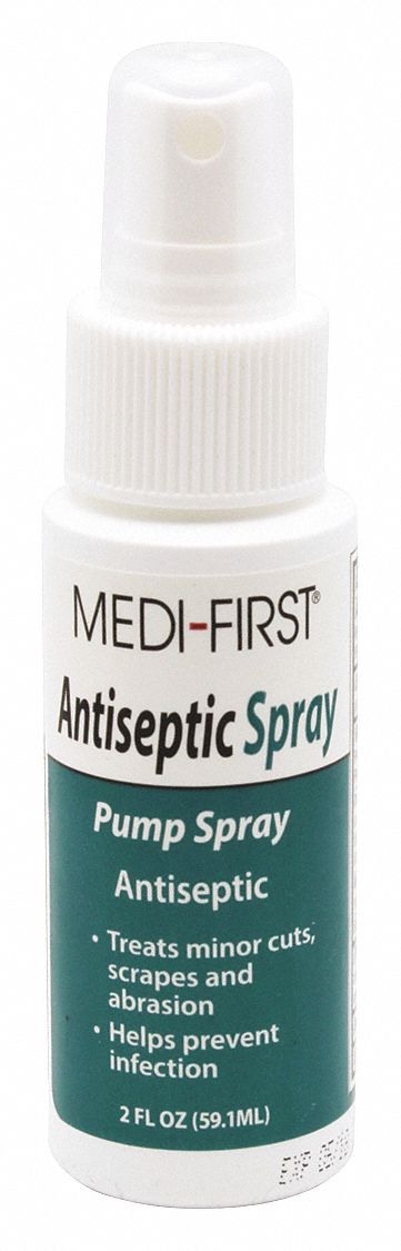 MEDI-FIRST Antiseptic Spray Non-Aerosol Generic NameS. But such remedies have varied over time from hydrogen peroxide and iodine to rubbing alcohol adhesive bandages and over-the-counter ointments. Leave the medicine in place for 15 seconds then spit it out.