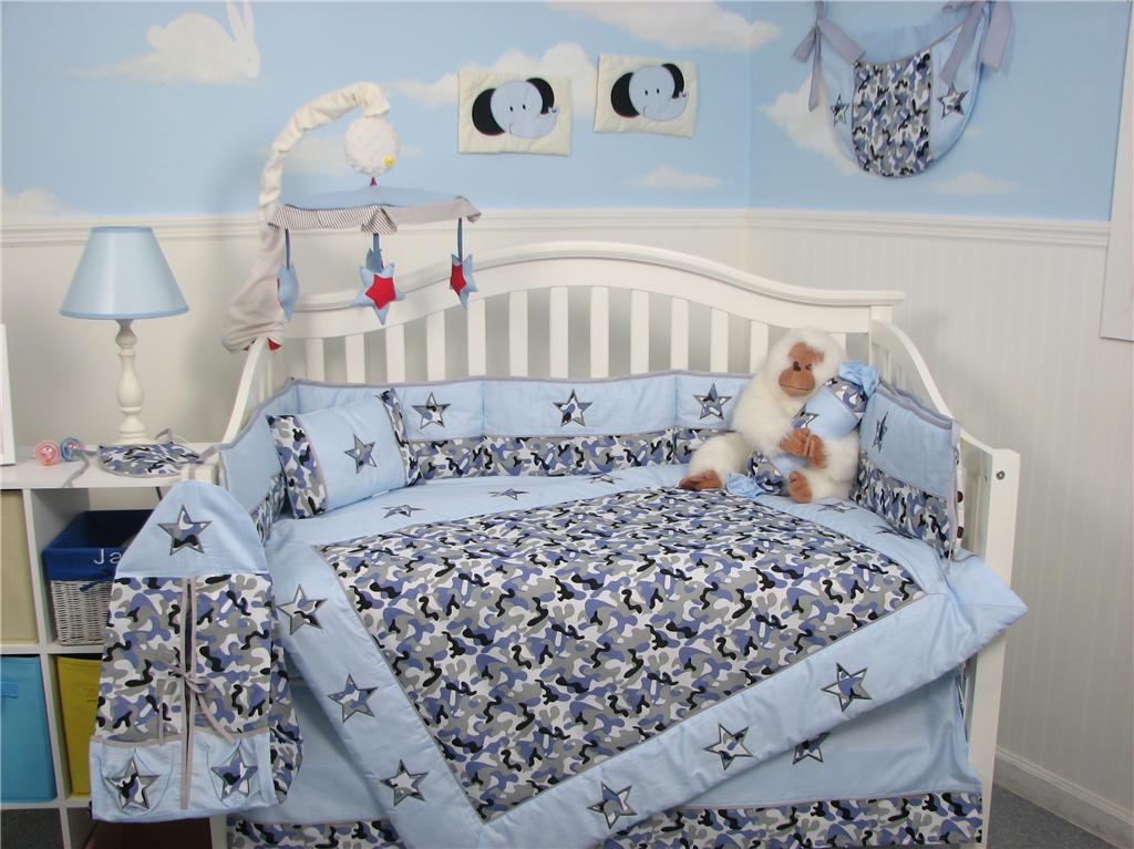 Blue Camouflage Baby Bedding